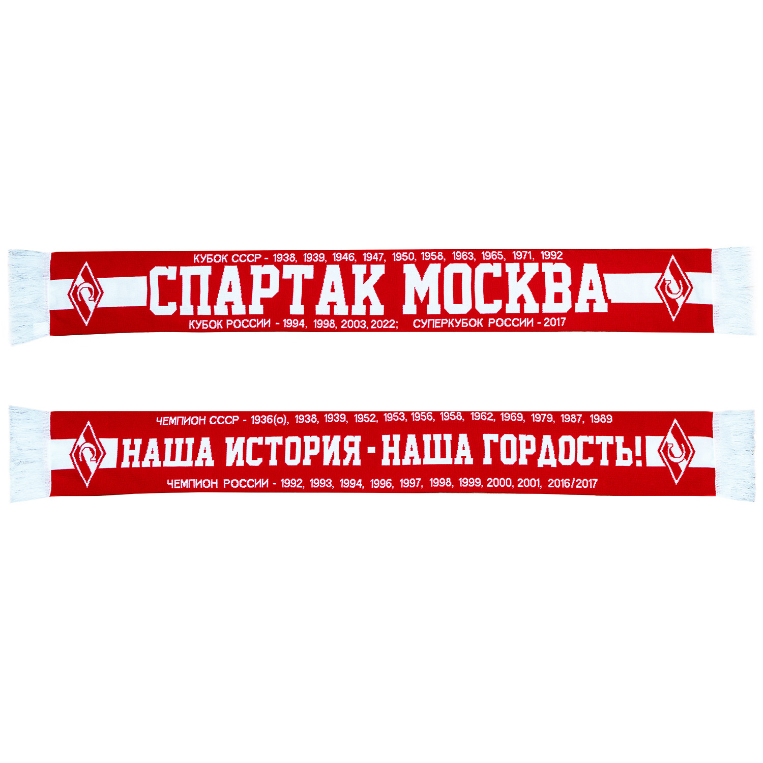 Мягкий и тёплый вязаный шарф "Спартак Москва: Наша История - Наша Гордость!". Посвящён всем титулам Великой футбольной команды.