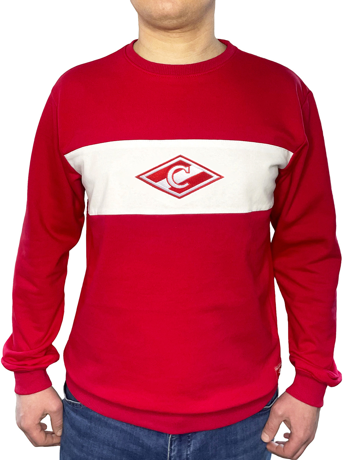 Свитшот "Спартак" классический, с белой поперечной полосой на груди и вышитым логотипом.