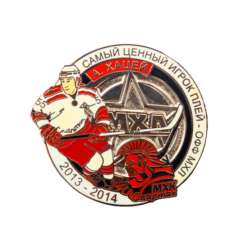 Значок "Арсений Хацей МХК Спартак". Самый ценный игрок серии плей-офф МХЛ 2013-2104.