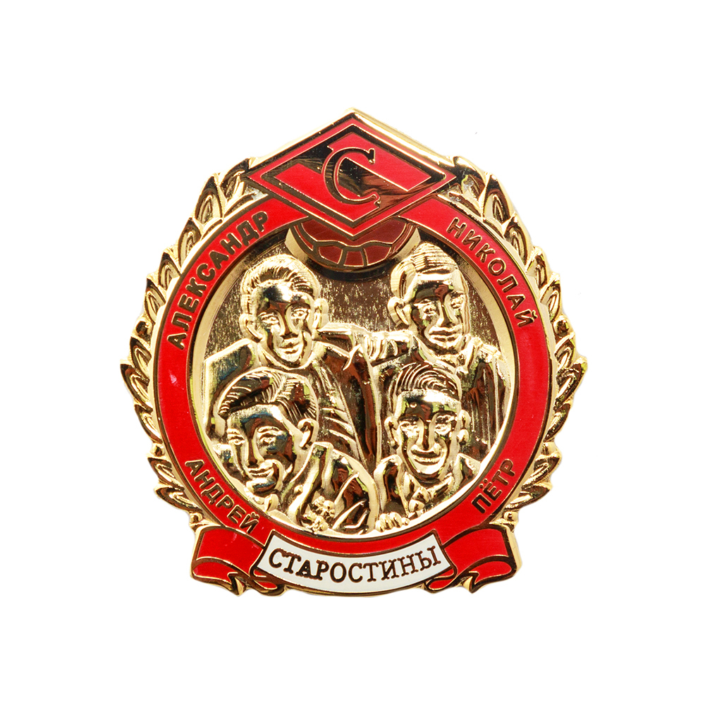 Значок "Братья Старостины", золотой, красно-белый.