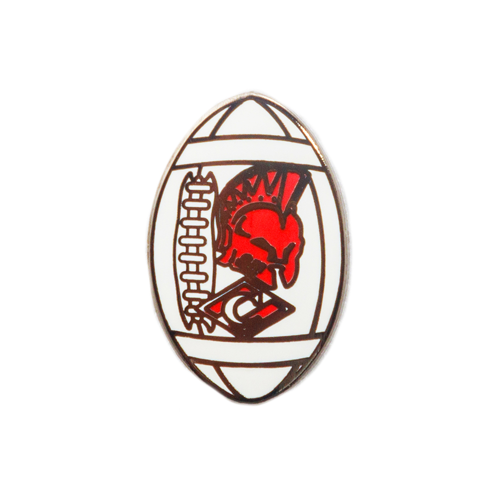 Значок "Спартак Регби". Изображены: мяч, логотип "Спартак", голова Гладиатора.